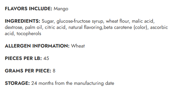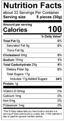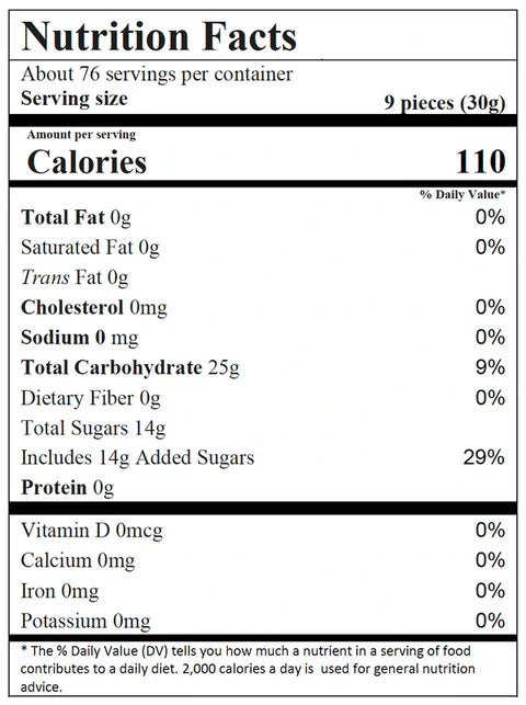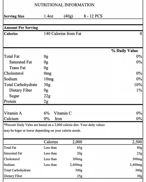 For a full list of Nutritional facts, Contact us at support@xoesweet.com